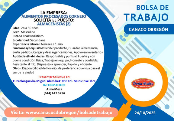 La Cámara de Comercio, Servicios y Turismo de Cd. Obregón es un organismo no gubernamental cuyo propósito es apoyar a las empresas locales fomentando el crecimiento económico ofreciendo servicios de calidad a sus afiliados, que van desde representatividad ante dependencias de gobierno, gestionar programas de apoyo, organizar eventos empresariales, pasando por otros servicios como renta de salones hasta servicios personalizados como bolsa de trabajo, programas de capacitación, diseño gráfico y publicidad.